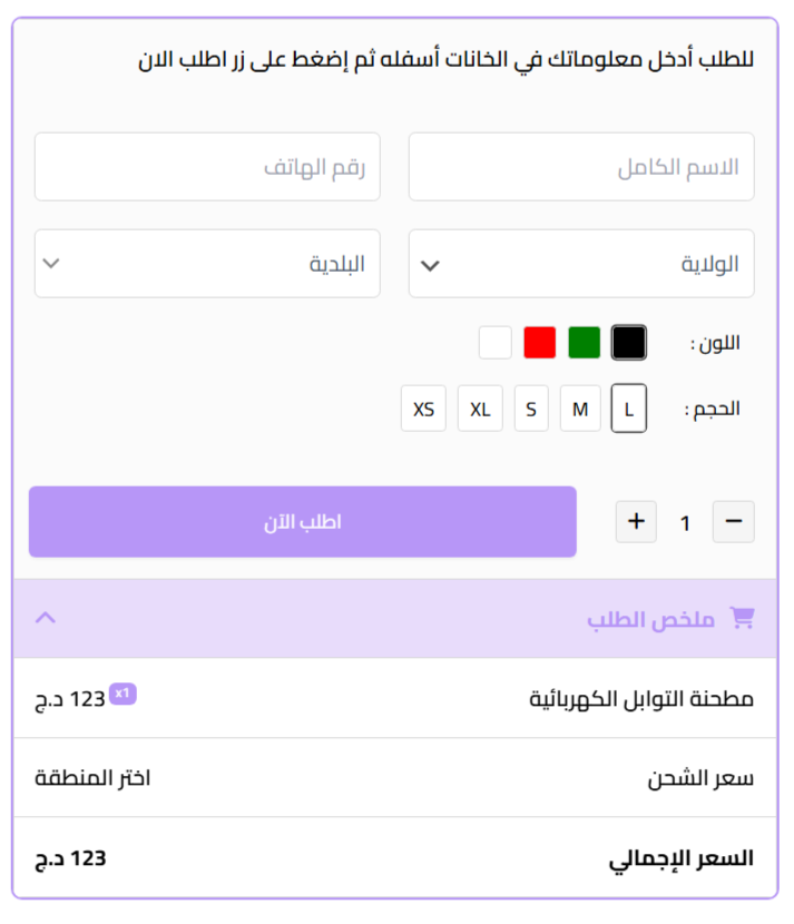 إضافة الدفع الإستلام WooEcom توفر لكم امكانية استخدام فورم الشراء السريع في صفحة الهبوط الخاص بك.